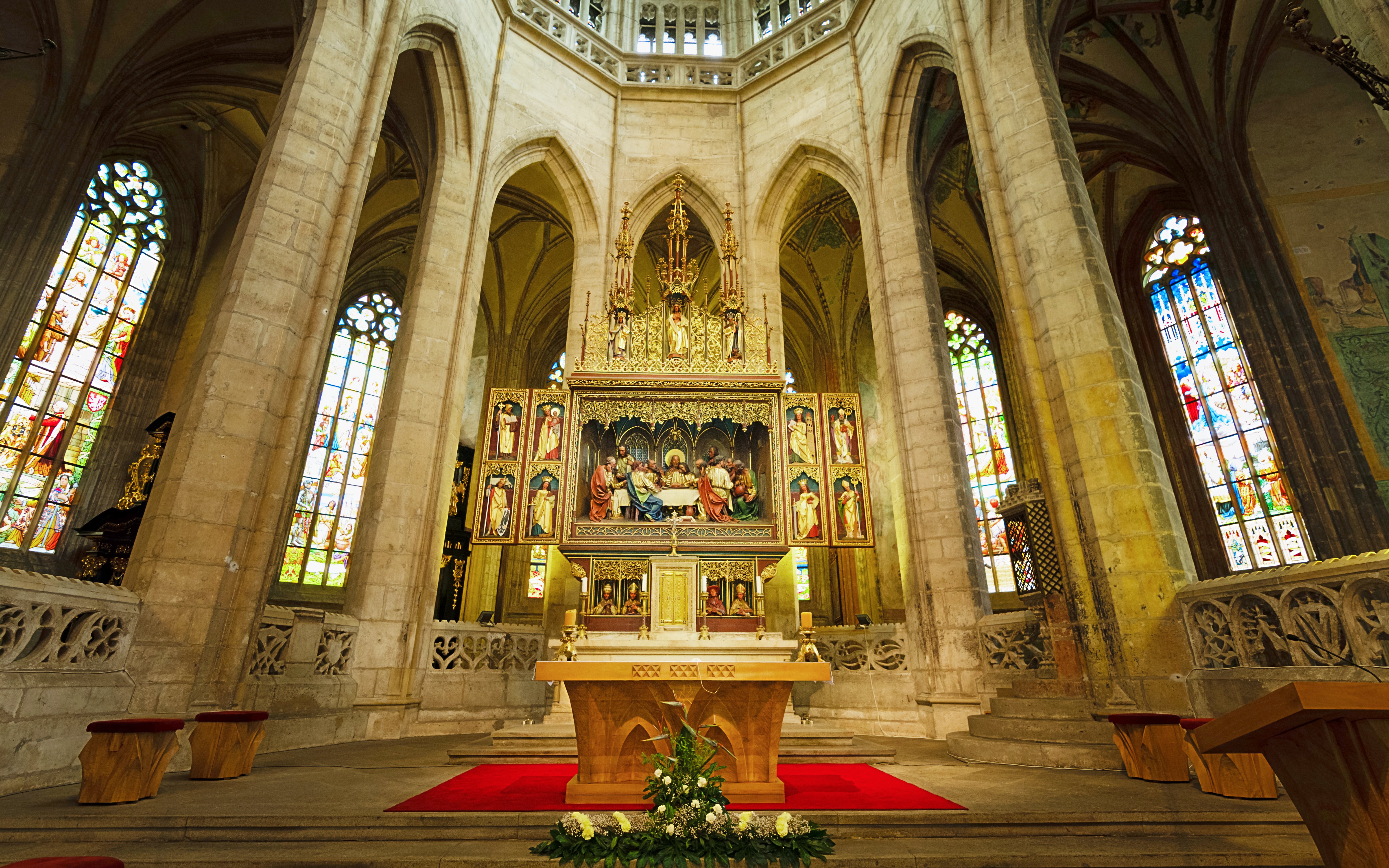 Cathédrale Sainte-Barbe : Visitez l'une des cathédrales gothiques les plus remarquables d'Europe centrale et parcourez ses intérieurs vertigineux, ses couloirs ornés de vitraux et ses terrasses à flanc de colline.