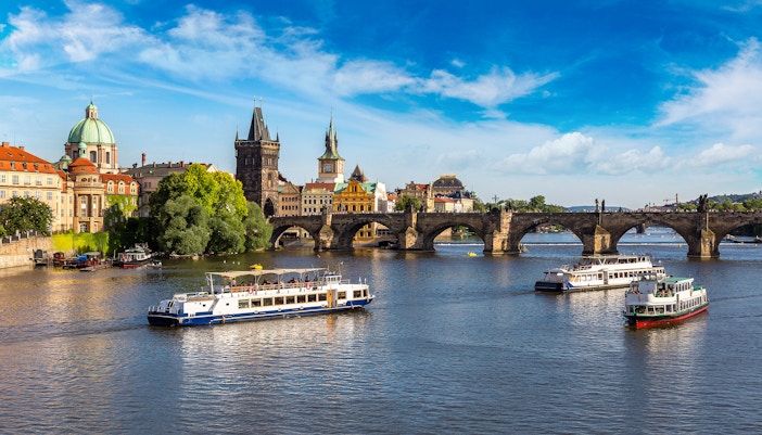 - Lo skyline di Praga, spesso chiamato la "Città delle cento guglie", diventa ancora più incantevole di notte. I campanili e i ponti brillano di luci dorate e si riflettono perfettamente sul placido fiume Moldava.