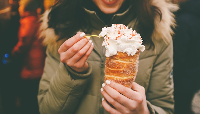- E per quanto riguarda il cibo, il Natale a Praga è una vera delizia. Prova la tradizionale cena ceca a base di carpa fritta e insalata di patate, oppure riscaldati con una tazza di svařák (vin brulé) da una bancarella nelle vicinanze.