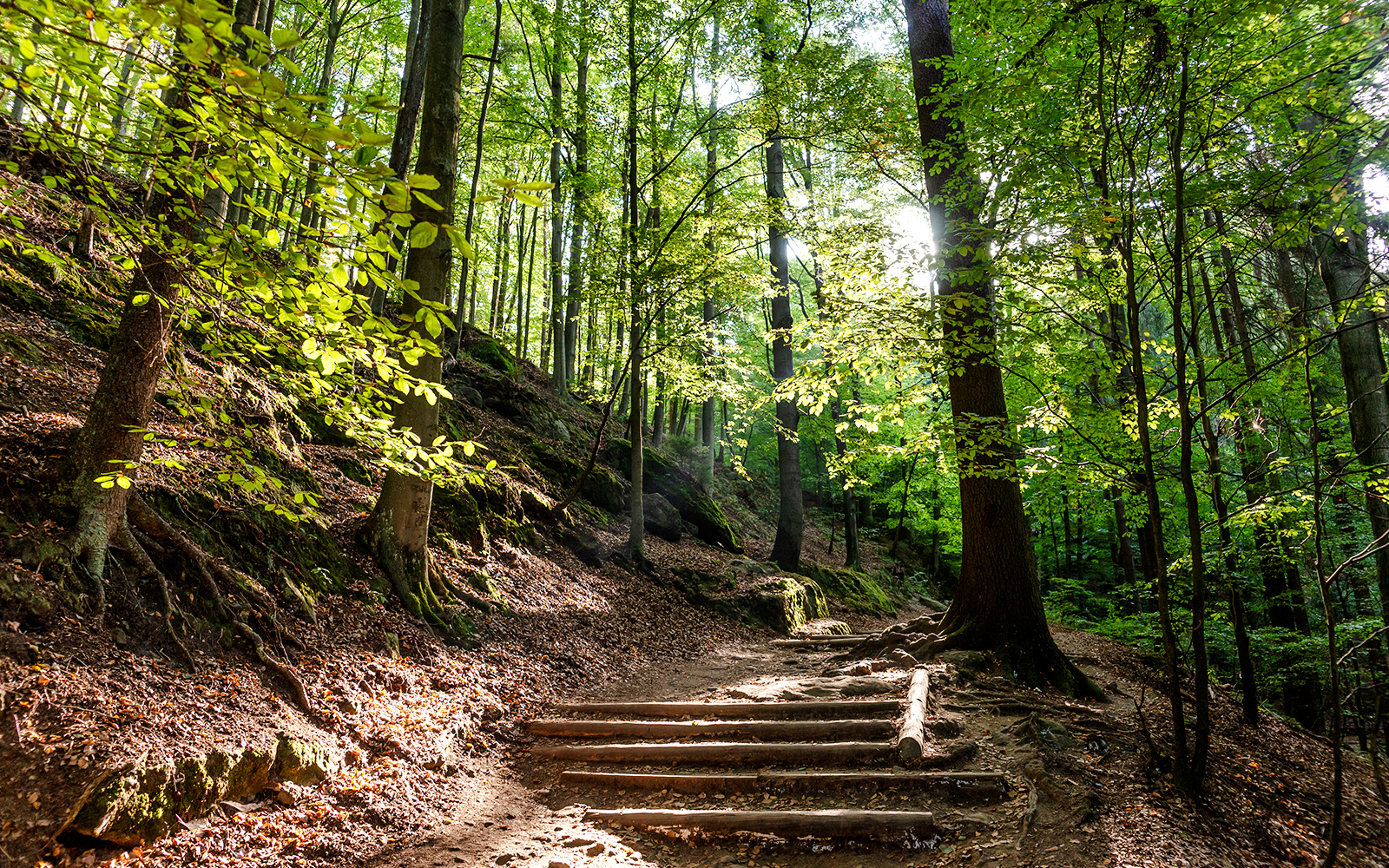 This popular route begins at the Bastei viewpoint and descends through forested paths and stone steps toward the Elbe River, ending in the village of Rathen, with continuous cliffside views along the way.